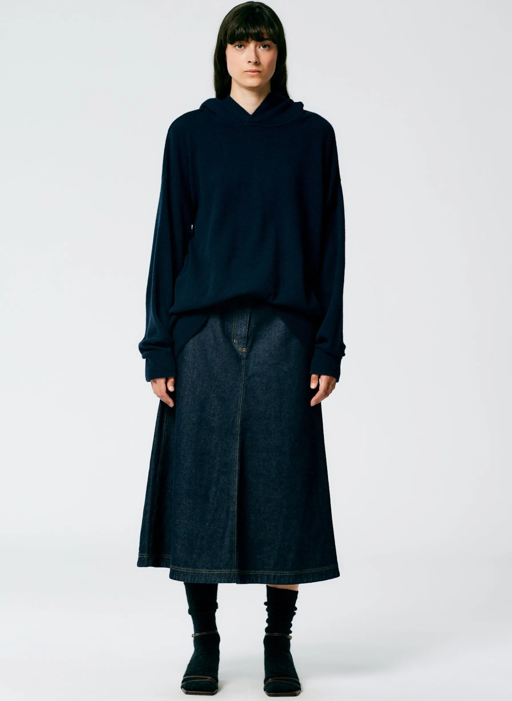 The Easy men’s hoodie is made from 100% lightweight cashmere that is meant to be worn 365 days a year. The feather weight cashmere is the ultimate 12 mo’er piece that elevates your hoodie rotation. Style back to the Light Weight Stone washed Asymmetrical Skirt, or back to novelty bottoms from the F23 main collection.